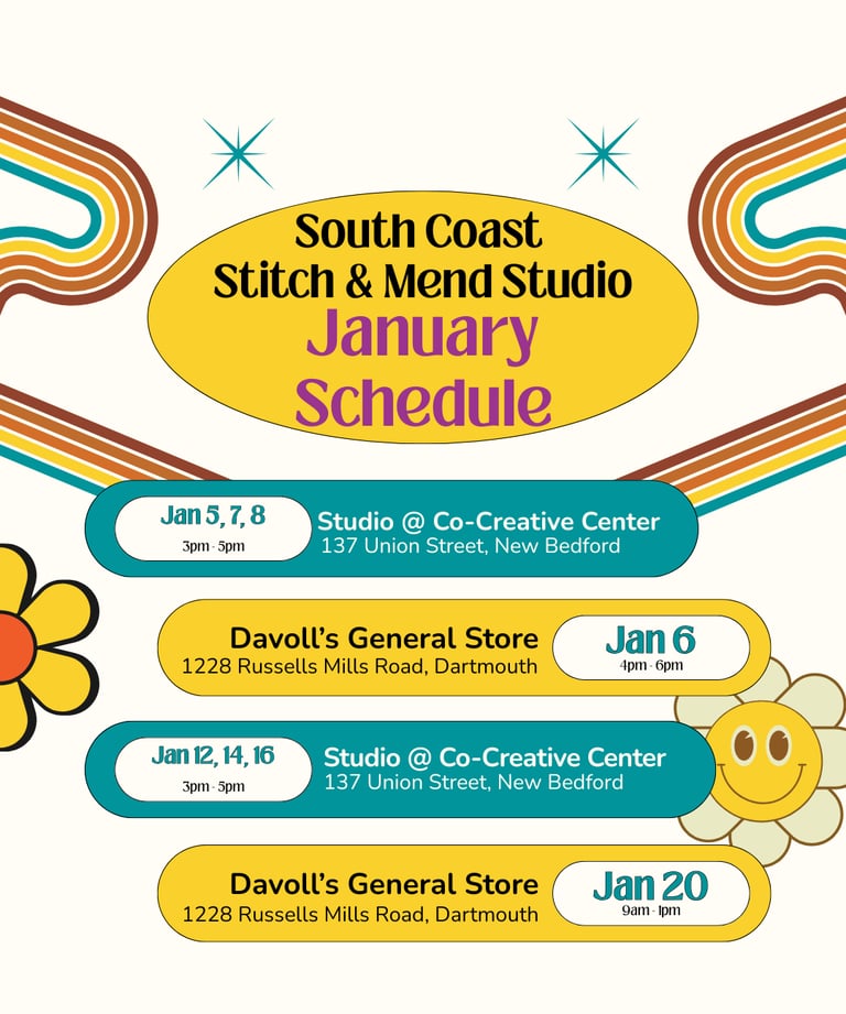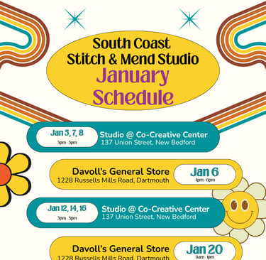 Reviving clothing through creative mending practices conveniently located in Westport, MA and New Bedford, MA.